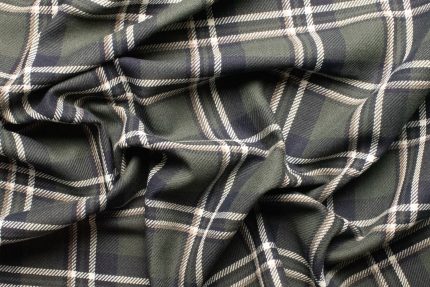 Сорочкова тканина картата 7 унцій під виварку (stone wash) зелена
