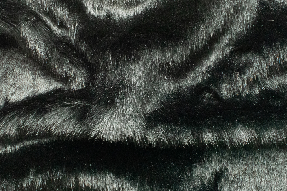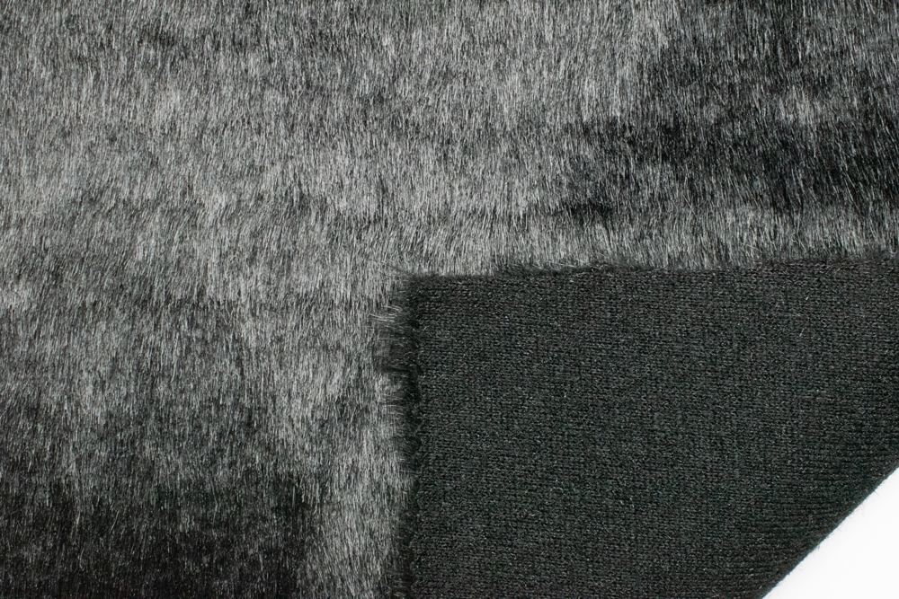 Штучне хутро з ворсом 17 мм у відтінках сірого та чорного, виконане у стилі «під вовка». Подовжений ворс з легким блиском і природними переливами створює ефект натурального хутра дикого звіра. Матеріал має щільність 550 г/м², що робить його теплим, зносостійким і при цьому м’яким та приємним на дотик. Трикотажна основа забезпечує еластичність і зручність у роботі.