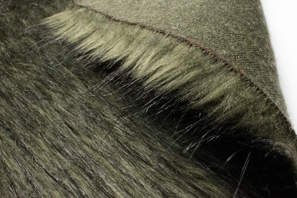 Штучне хутро з довгим ворсом 70 мм у трендовому кольорі хаки. Ворс густий і м’який, створює ефект натурального хутра та надає виробам виразного вигляду. Завдяки довжині ворсу матеріал виглядає об’ємно й розкішно, підходить для створення дизайнерських колекцій та акцентних елементів.