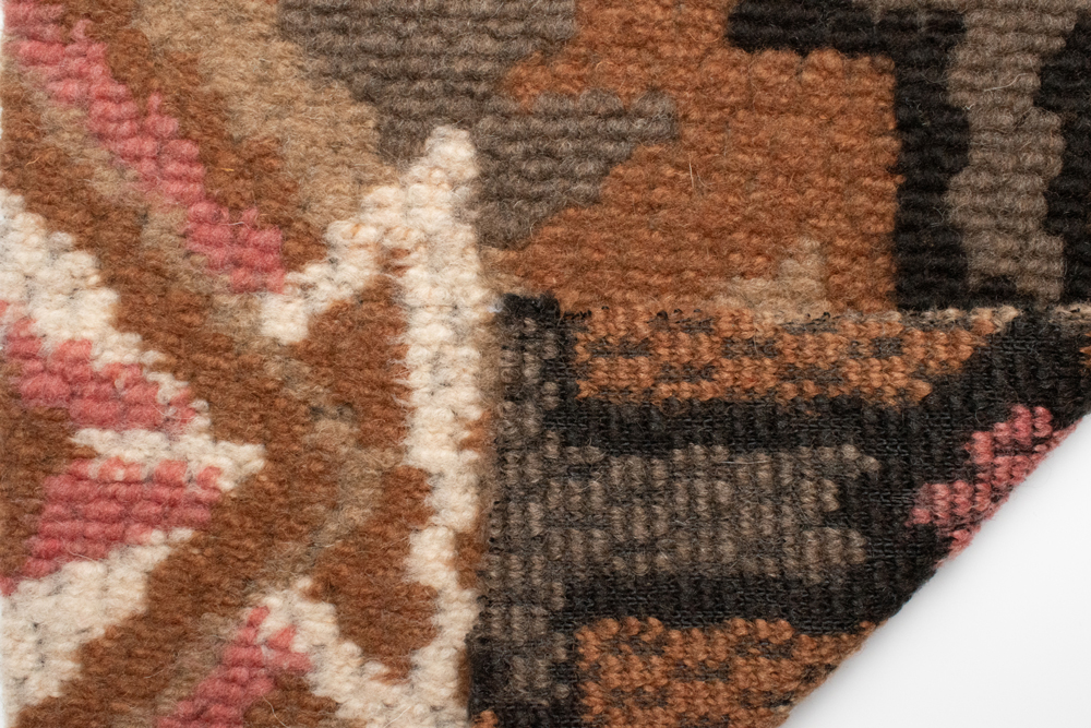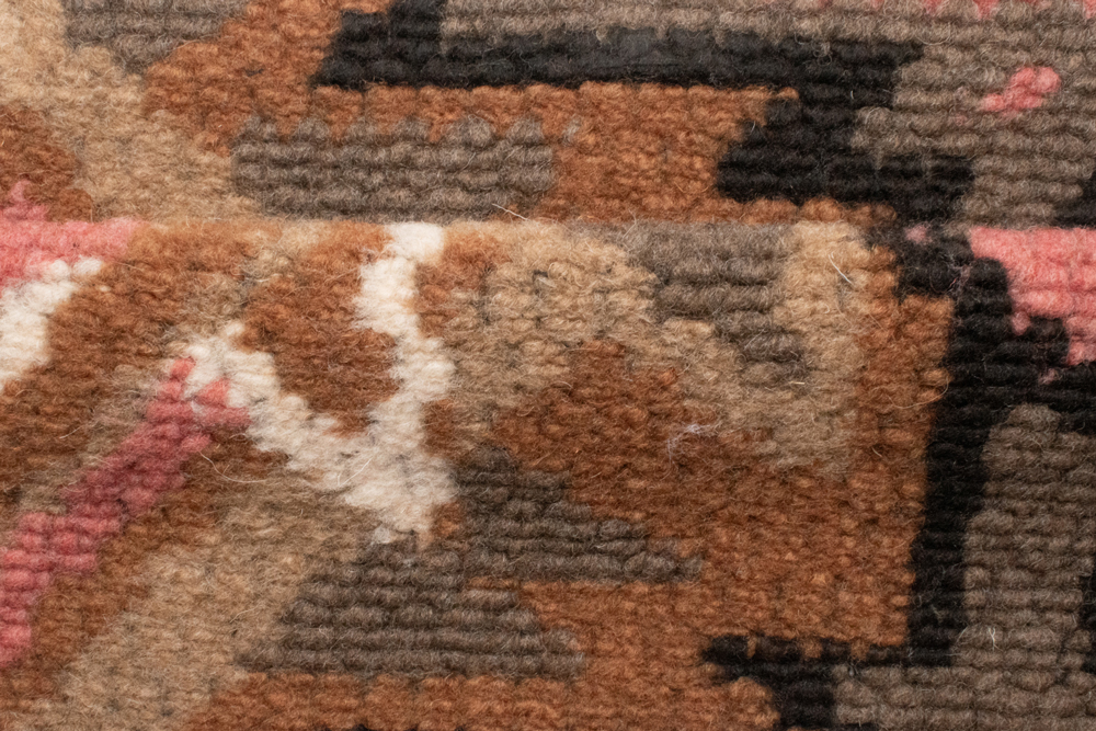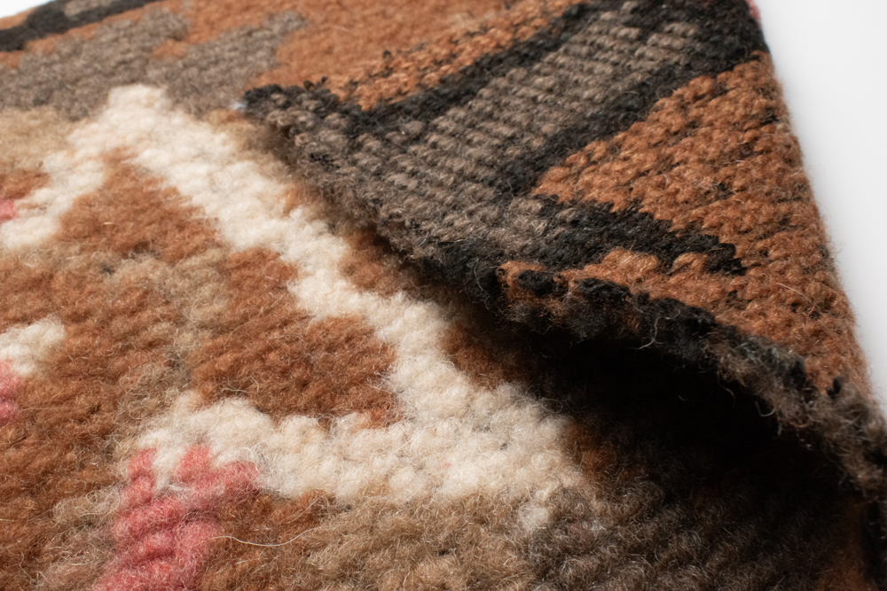 Штучне хутро з етнічним малюнком — матеріал із виразним дизайном у теплих відтінках коричневого, бежевого, чорного та рожевого кольорів. Візерунок нагадує традиційні орнаменти, створюючи ефект ручного ткацтва. Завдяки такій особливості тканина виглядає дорого та оригінально, а готові вироби вирізняються особливим характером.